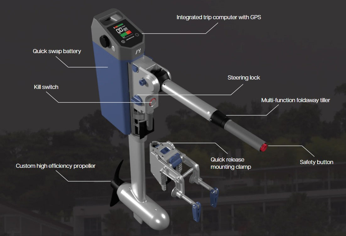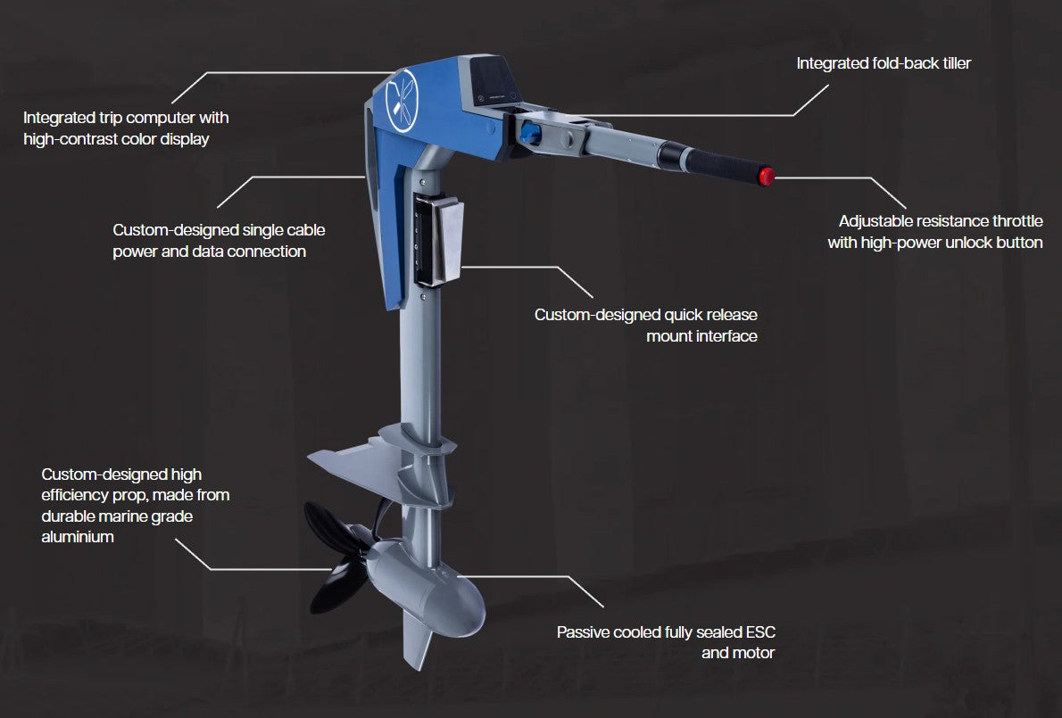 The no compromise compact lightweight electric outboard - endurance to last all day, power when you need it